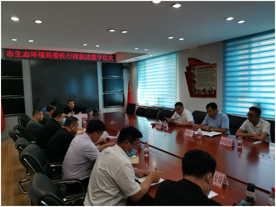 根据《白山市生态环境机构监测监察执法垂直管理制度改革实施方案》《中共白山市委机构编制委员会关于白山市生态环境局派出机构设置、职责和编制相关事宜的批复》,为进一步规范生态环境行政执法工作,依法确立环境行政执法委托单位与受委托单位的权利与义务,规范相关法律程序,推动“治理重心下移”,建立上下联动、职能科学、权责法定、执法严明、公开公正、廉洁高效、守法诚信的执法机制,7月2日,白山市生态环境局与市环境综合执法支队、各县(市、区)分局举办了行政执法委托签订仪式,市司法局相关负责人应邀参加会议。会议由市生态环境局副局长栗祥东主持。