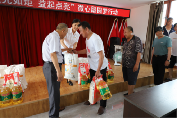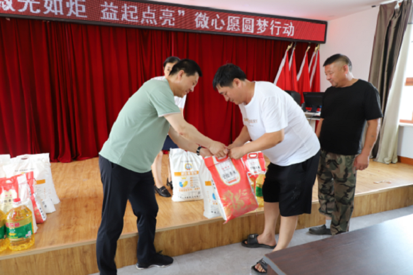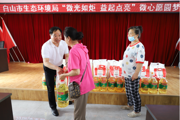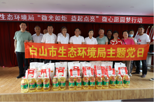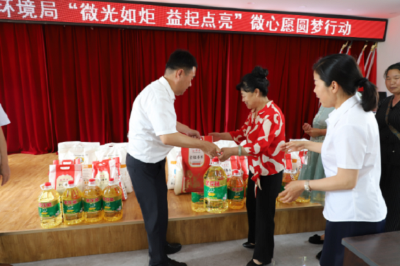 活动前,市生态环境局主动联系包保村和社区,了解困难群众需求,组织全体党员捐款3660元认领困难群众的微心愿。活动当天,党员志愿者们为困难群众送去食用油、大米、面粉等“微心愿”物品,鼓励他们保持乐观心态、积极面对生活中的困难。