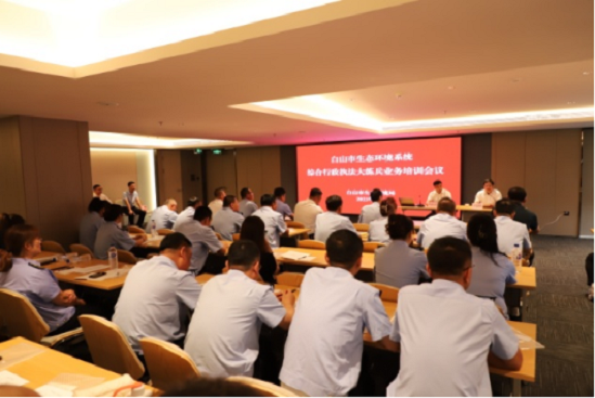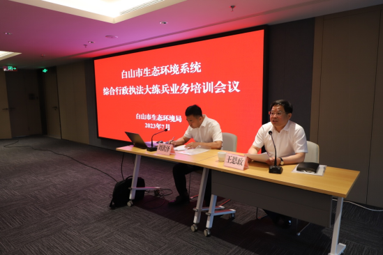 2023年上半年全省生态环境系统重点工作调度推进会议召开后,白山市生态环境局迅速贯彻落实会议精神,7月7日,组织召开了全系统综合行政执法大练兵业务培训会议。党组书记、局长王恩政参加开班仪式并讲话,党组成员、副局长刘洪泽主持开班仪式。
