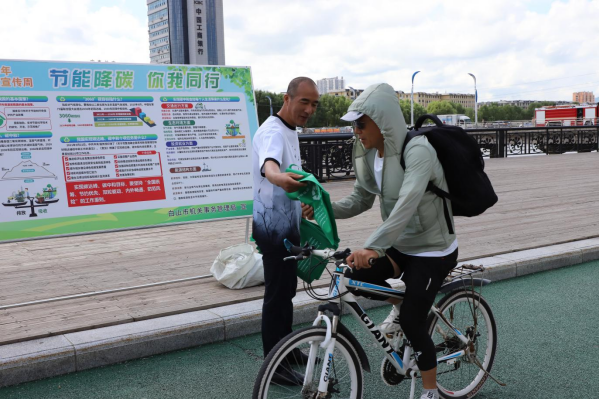 7月12日上午,市发改委、市生态环境局组织相关部门在市政府对面广场开展了集中宣传活动。现场悬挂宣传条幅12条、展出宣传展板20块、现场设置咨询台2个、发放《公民生态环境行为规范(试行)》和大气污染宣传手册等宣传资料500余份,普及应对气候变化知识,提升全民低碳意识,倡导简约适度、绿色低碳的生产生活方式。通过开展宣传活动,使广大市民更加深刻地认识到节约能源、低碳出行的重要意义,表示在日常生活中从自身做起、从小事做起,节约每一滴水、每一度电和每一张纸,以实际行动践行绿色低碳生活。