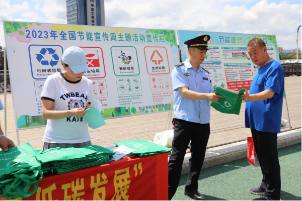 7月10日以来,市发改委、市生态环境局、市机关事务管理局在市政府办公楼一楼LED显示屏播放“全国低碳日”主题宣传片;在市委、市政府办公楼悬挂宣传条幅12个;组织各节能领域利用微信平台发布节能宣传短文;联合市直机关工委组织机关干部参与吉林省生态环境厅联合中国环境报举办的“全国低碳日有奖答题活动”;联合工信、教育、妇联等部门,开展节能减排知识进企业、进机关、进学校、进社区、进家庭“五进”等宣传活动。
