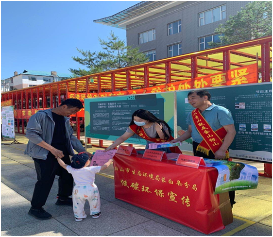 为强化节能低碳宣传教育,营造节能降碳的浓厚社会氛围,7月2日,白山市生态环境局长白县分局在民族文化广场,围绕低碳日活动主题“绿色低碳,全面小康”和节能宣传周活动主题 “绿水青山,节能增效”,精心组织,周密安排,组织开展了宣传活动。