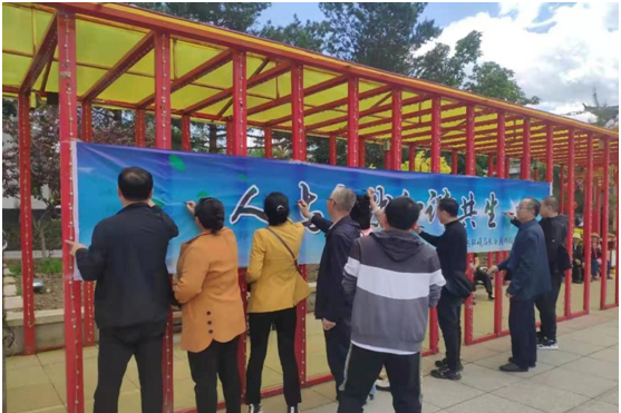 开展了环保签名承诺活动,动员和引导每一个人都自觉行动起来,积极投身污染治理和践行绿色低碳生产生活方式,做生态环境保护的先行者、宣传者和监督者,为建设人与自然和谐共生的美丽长白凝聚共识、汇聚力量。在场群众郑重地在“人与自然和谐共生”宣传横幅上签字,承诺自觉做保护生态环境的表率,从自身做起,从身边小事做起,守护绿水青山,共建美好家园。