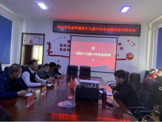 为深入学习贯彻党的十九届六中全会精神,近日,白山市生态环境局长白县分局邀请市纪委驻市局纪检组组长杨秀娟作学习贯彻党的十九届六中全会精神宣讲。长白县分局负责人主持会议。局机关全体干部职工参加报告会。