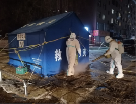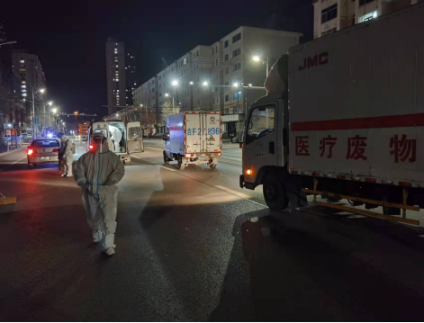 由于大部分同志下沉到社区,负责环境消杀和医疗废物收集转运的管理人员压力倍增。他们白天晚上连轴工作,吃住在单位,辗转于12个镇街的核酸检测点、隔离点、封控区,协调督导对医疗废物和涉疫垃圾进行收集、转运。同时背着沉重的消杀设备,手持喷雾枪对重点区域及医废进行反复消毒。5次全员核酸检测期间,转运医疗垃圾300余车次。组织协调森林消防大队、蓝天救援队,对市内隔离点、封控区开展环境消杀工作,累计消杀3万余平方米,有效切断传染源,阻断病毒传播途径。