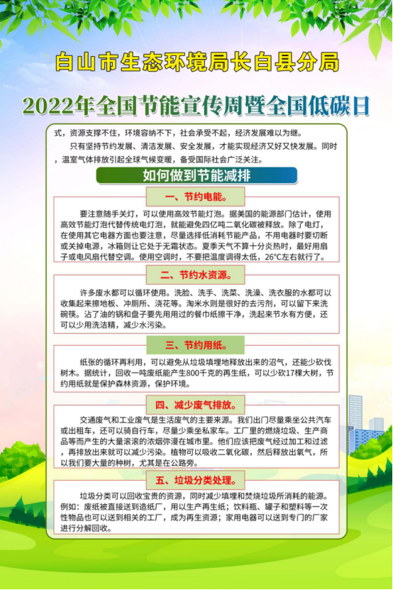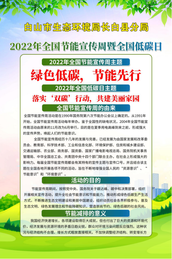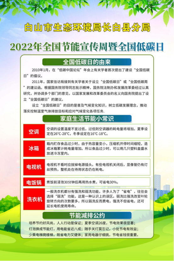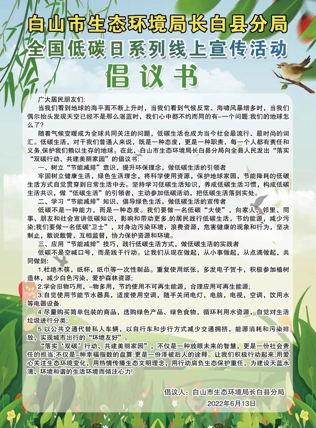 为引导和推动社会公众牢固树立生态文明理念,践行简约适度、绿色低碳生活方式,根据疫情防控工作实际,近日白山市生态环境局长白县分局启动“落实‘双碳’行动,共建美丽家园”线上主题宣传活动。
