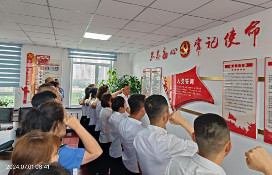 开展了“重温入党誓词”活动。在党支部书记的带领下,全体党员干部面向鲜红的党旗,举起右拳,庄严宣誓。铮铮誓言、慷慨激昂,让每一位党员干部再一次感受到思想的洗礼和升华,进一步激发了大家的爱国爱党情怀,坚守了入党初心和使命。