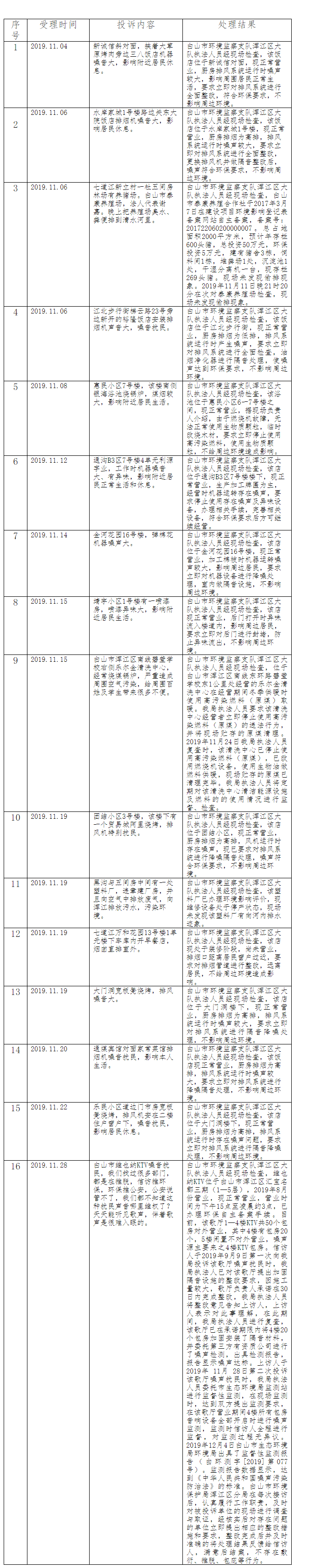 浑江区信访案件信息公开登记表(11月)
