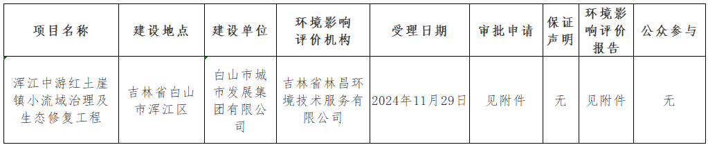 根据建设项目环境影响评价审批程序的有关规定,现将浑江中游红土崖镇小流域治理及生态修复工程环境影响报告表受理情况予以公示,公示期为7个工作日。自公示之日起,建设单位和利害关系人享有要求听证的权利。