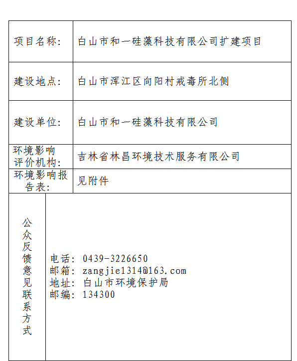 白山市和一硅藻科技有限公司扩建项目受理情况公开