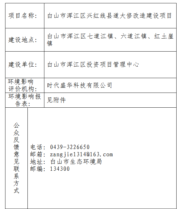 白山市浑江区兴红线县道大修改造建设项目受理情况公开