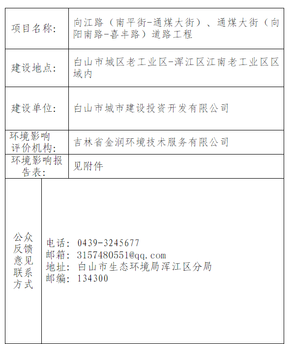 向江路(南平街-通煤大街)、通煤大街(向阳南路-喜丰路)道路工程受理情况公开
